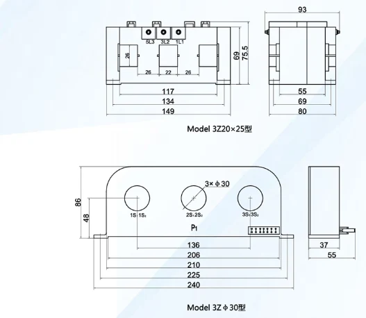 | 모델 | 정격 기본 전류 (A) | 정격 보조 전류 (a) | 정확도 클래스 | 평가 부담 (VA) | 절연 레벨 (kv/min) |